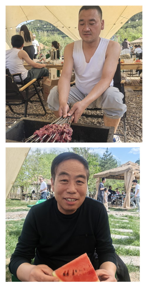 登頂后的喜悅尚未褪去,大家便奔赴西溝村A露營基地,開啟超治愈的燒烤派對!鮮嫩的肉串在烤架上滋滋作響,香氣四溢;金黃的雞翅、新鮮的蔬菜,在同事們的協(xié)作下變成一道道美味佳肴。有人化身“燒烤大師”大展廚藝,有人主動(dòng)負(fù)責(zé)后勤保障,歡聲笑語與煙火氣息交織,勾勒出“振興大家庭”的溫暖畫卷。