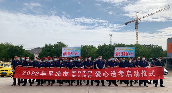 2022年6月6日上午,平?jīng)鍪姓衽d集團(tuán)下屬的振興出租公司,優(yōu)e出行網(wǎng)約車公司以“愛(ài)心送考,為夢(mèng)護(hù)航”為主題的公益活動(dòng)在平?jīng)鍪嗅轻紖^(qū)工業(yè)園區(qū)甘肅振興天通電子物流團(tuán)舉行啟動(dòng)儀式。啟動(dòng)儀式上平?jīng)鍪械缆愤\(yùn)輸管理局樊昌明科長(zhǎng)發(fā)表了真誠(chéng)的講話,表達(dá)了對(duì)莘莘學(xué)子的殷切期盼,同時(shí)也號(hào)召?gòu)V大駕駛員們積極響應(yīng),匯聚愛(ài)心,共同展示社會(huì)文明風(fēng)采。平?jīng)鍪芯C合執(zhí)法隊(duì)六科科長(zhǎng)劉偉紅就高考期間車輛安全出行進(jìn)行重要部署,強(qiáng)調(diào)安全第一。儀式最后,由振興集團(tuán)總經(jīng)理鄭虎宣布“愛(ài)心送考”儀式全面啟動(dòng)。