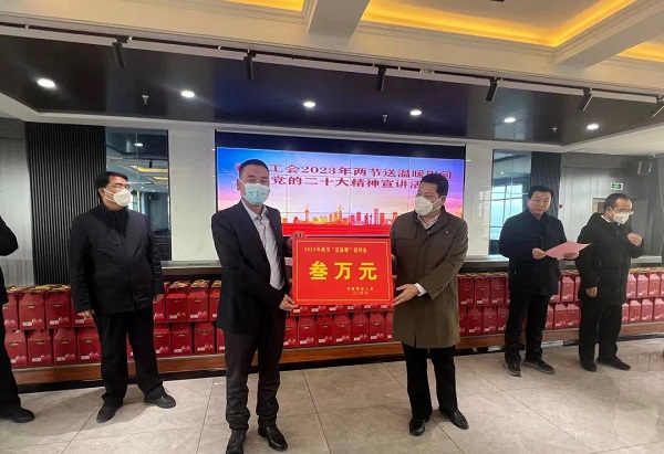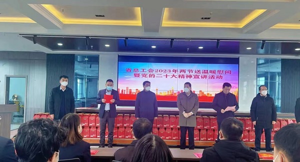 1月12日下午,省總工會黨組成員、經(jīng)審會主任馮繼波和平?jīng)鍪腥舜蟪N瘯h組副書記、副主任、市總工會主席徐毅等一行深入振興集團(tuán)公司開展2023年“兩節(jié)”送溫暖慰問暨黨的二十大精神宣講活動。振興集團(tuán)公司總經(jīng)理鄭虎出席參加此次慰問活動并發(fā)表了致辭。